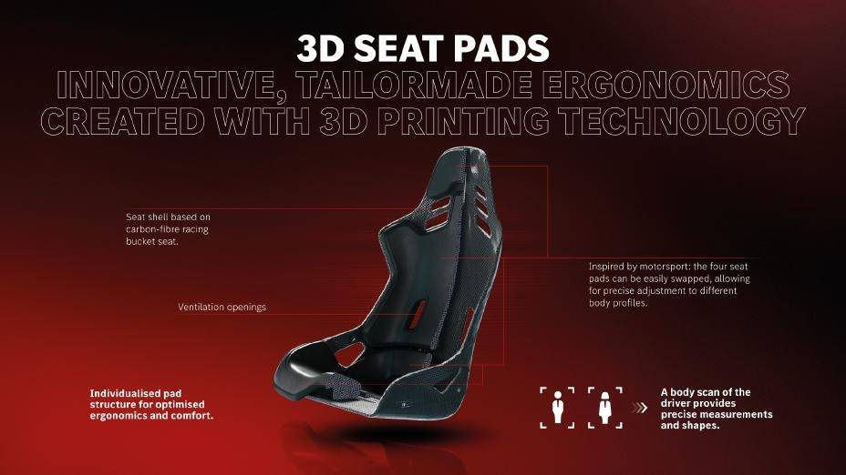 在内饰创新方面,CONCEPT AMG GT XX引入了专为高端性能车设计的3D打印座椅。该座垫基于人体工学扫描技术,通过3D打印实现高度个性化定制,完美贴合驾驶者体型,显著提升舒适性与支撑性。